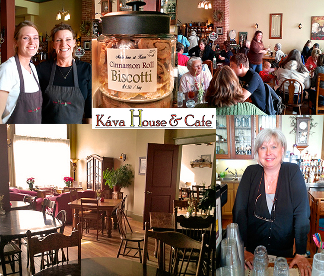 At the end of my last speaking trip through northern Iowa, I stopped here with my sister and enjoyed a relaxing morning visiting over a hot mochas. We split a generous-sized serving of breakfast omelet casserole and each found something to take home, too. I walked out the Káva House & Café door with a container of raspberry-peach bread pudding—and the satisfaction of sharing the morning with my sister in a perfectly delightful place.